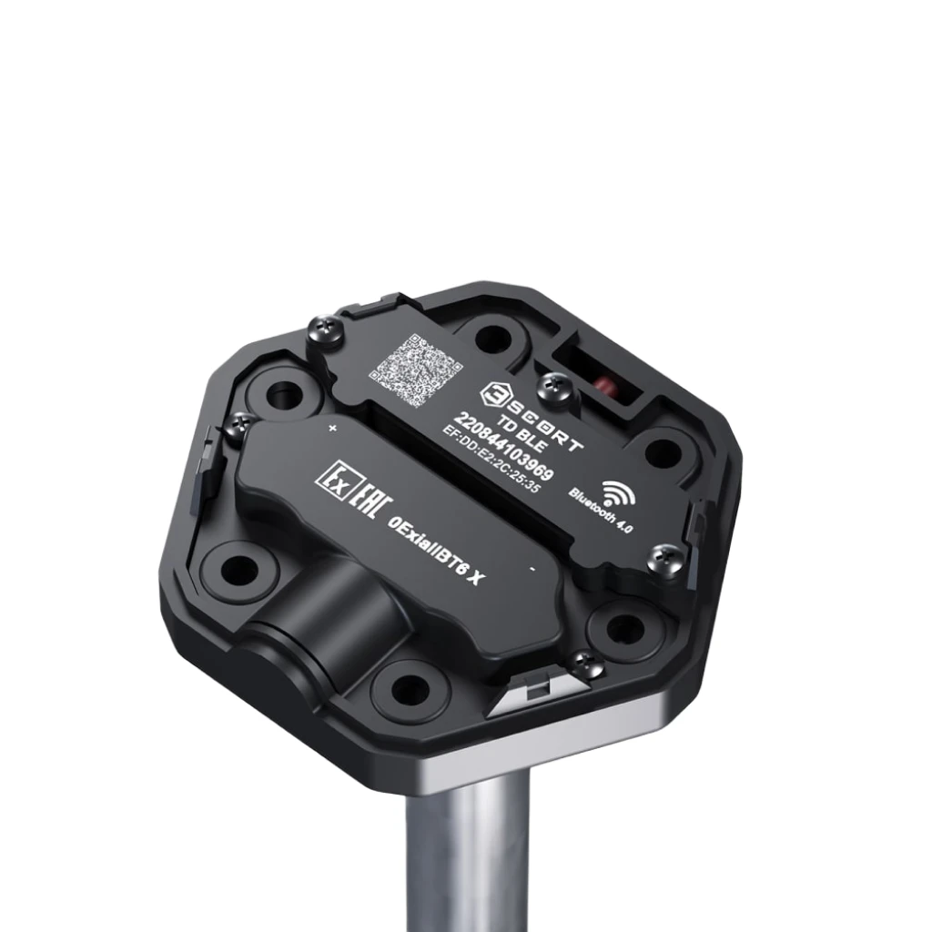 Беспроводной датчик уровня топлива «Эскорт ТД-BLE» совместим по технологии передачи данных Bluetooth Low Energy (BLE) с такими популярными трекерами, как Teltonika, Навтелеком, Неоматика, Queclink.